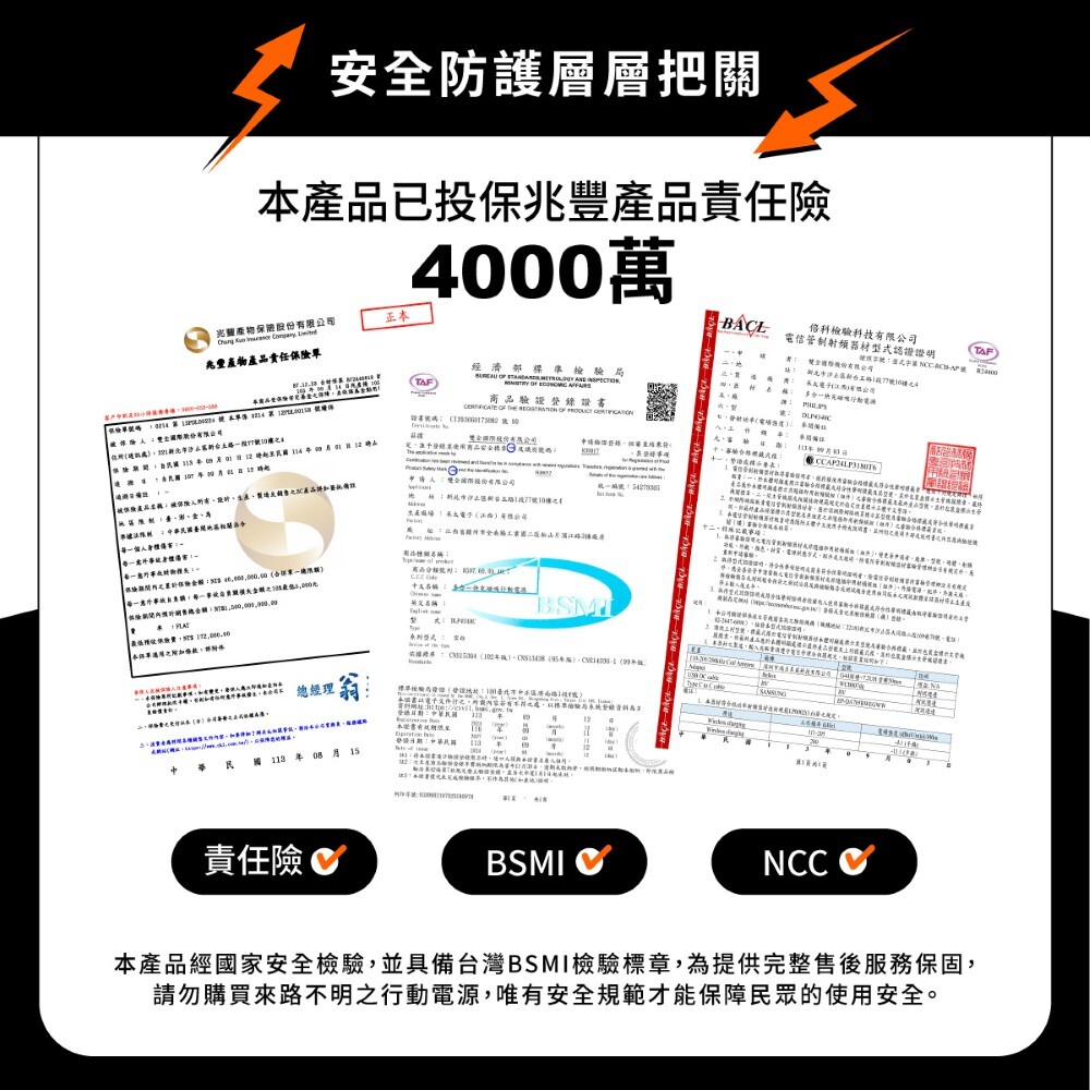 • 飛利浦貼心多重安全防護:過充保護、過流保護、過放保護、電流偵測、過壓偵測、短路保護