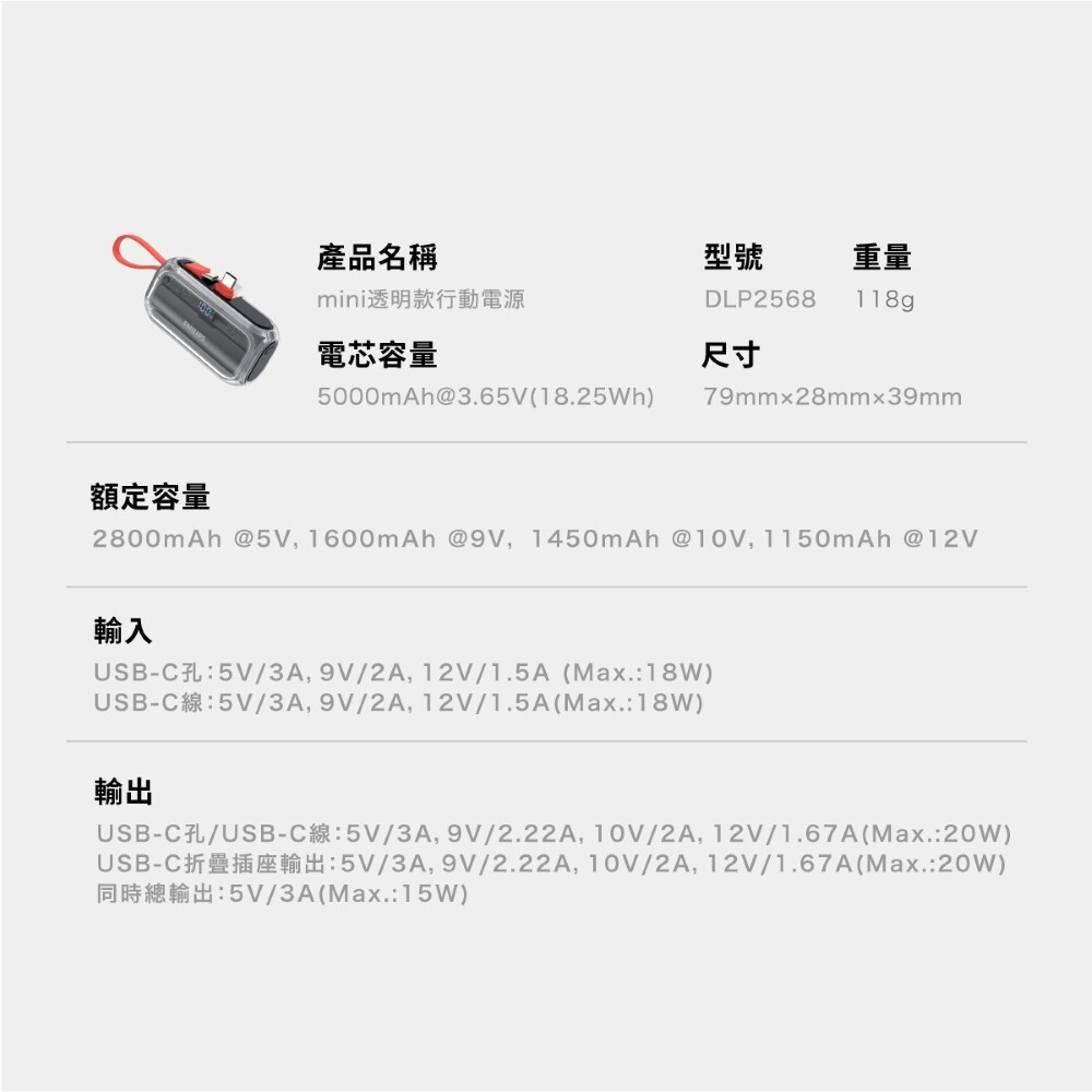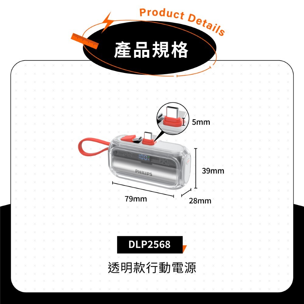 【PHILIPS 飛利浦】透明款行動電源 5000mAh DLP2568C