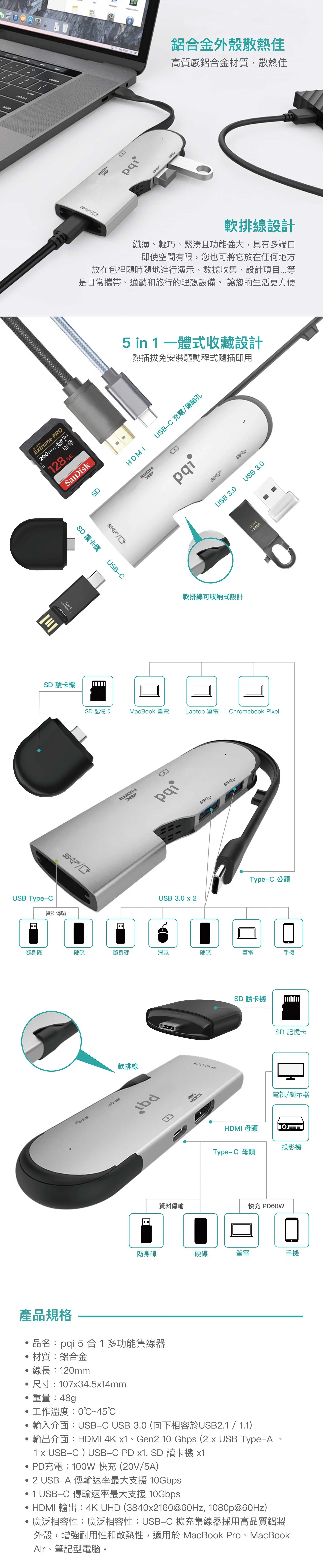 • 品名:PQi 5 合1多功能集線器