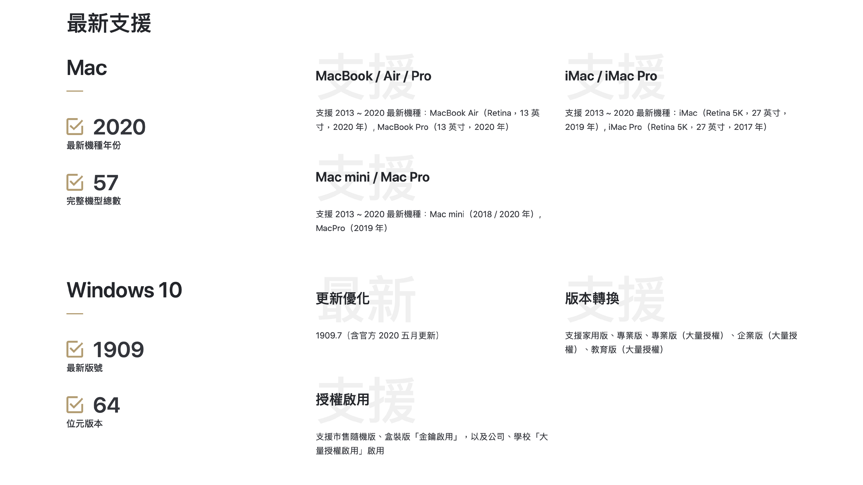 • 支援 2013 – 2020 年所有 Mac 電腦機型