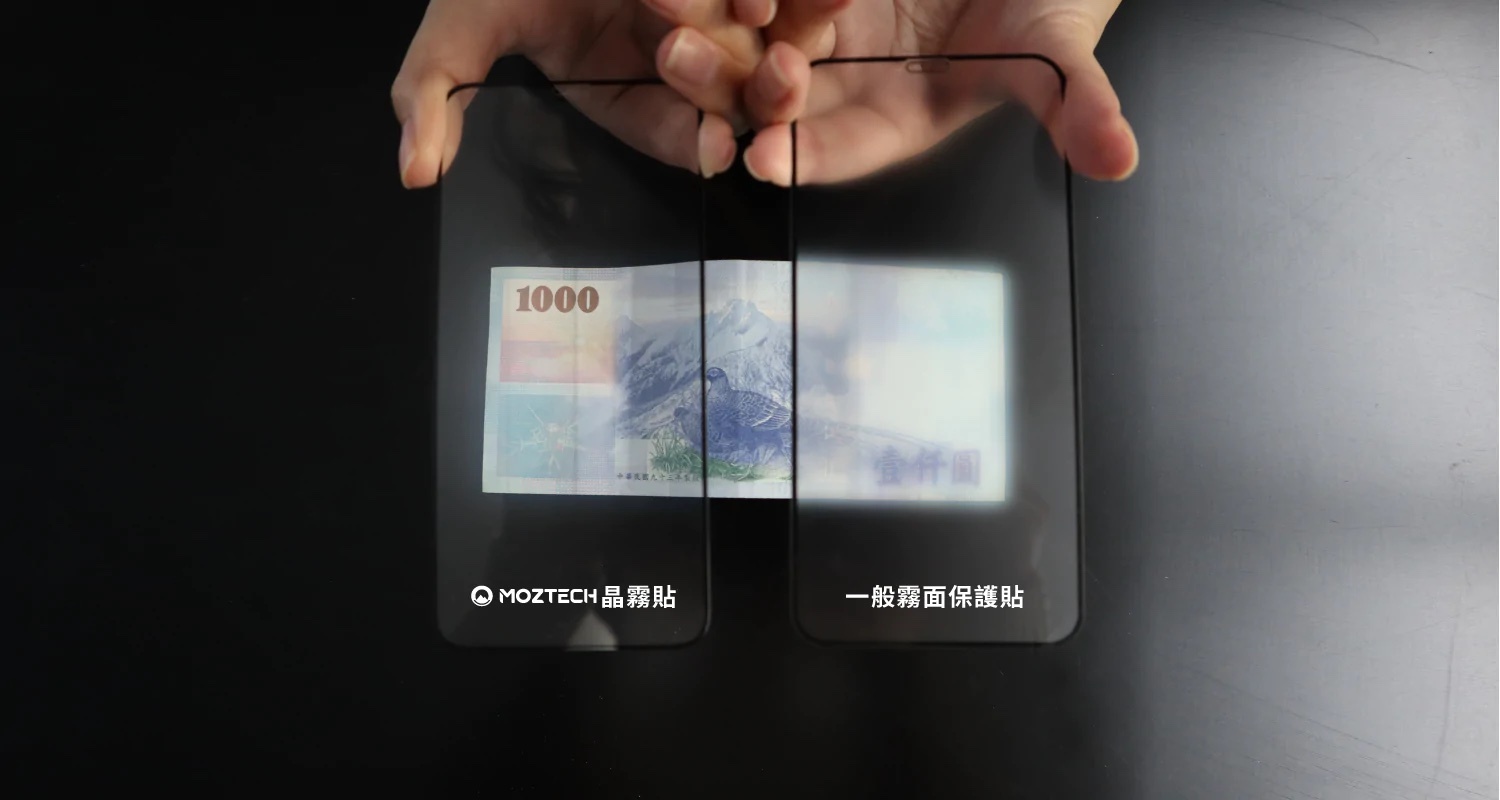 ( 左:MOZTECH晶霧貼 / 右:他牌霧面保護貼 )