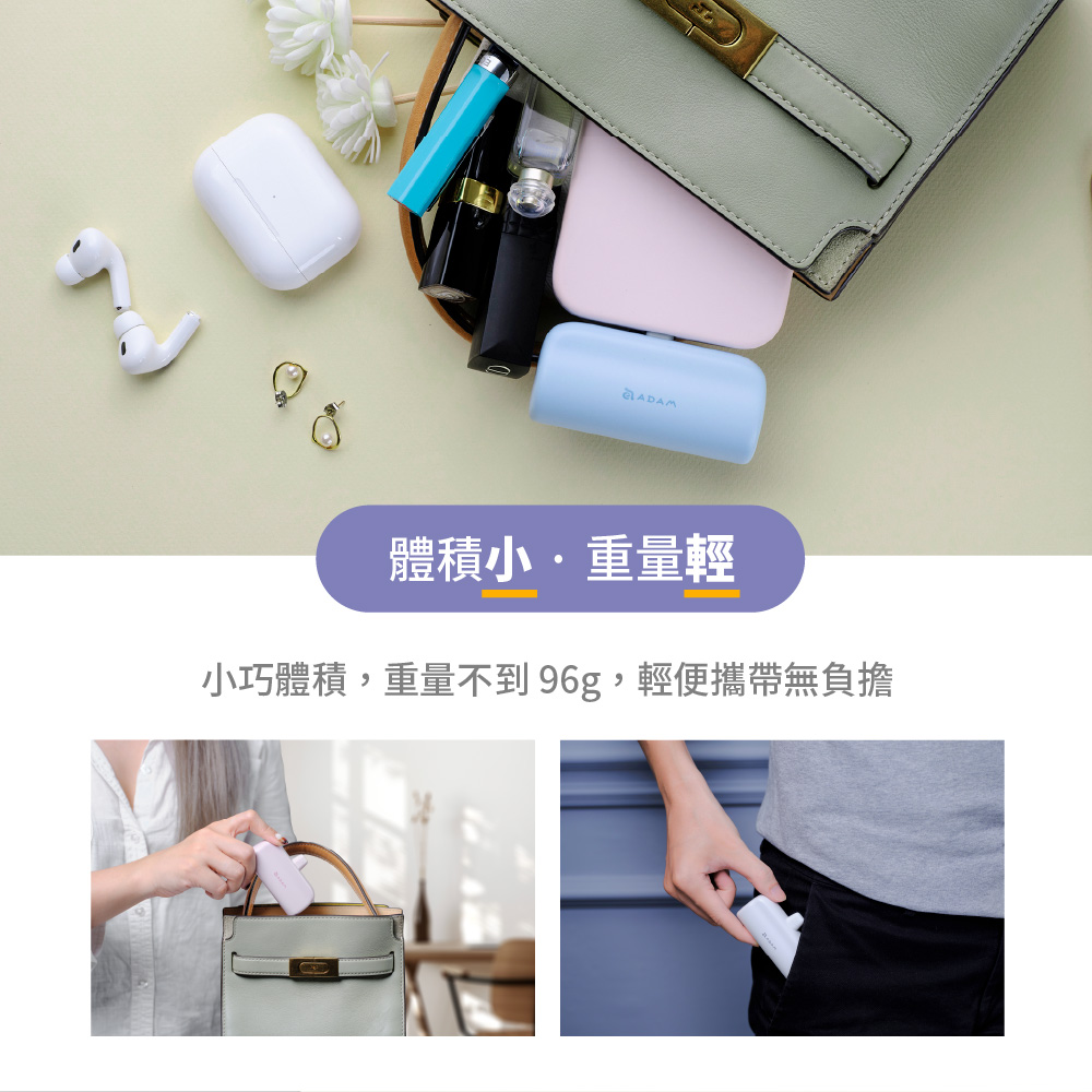 - 小巧體積,約一支口紅的長度,重量不到100g,輕便好攜帶,放口袋也無負擔。
