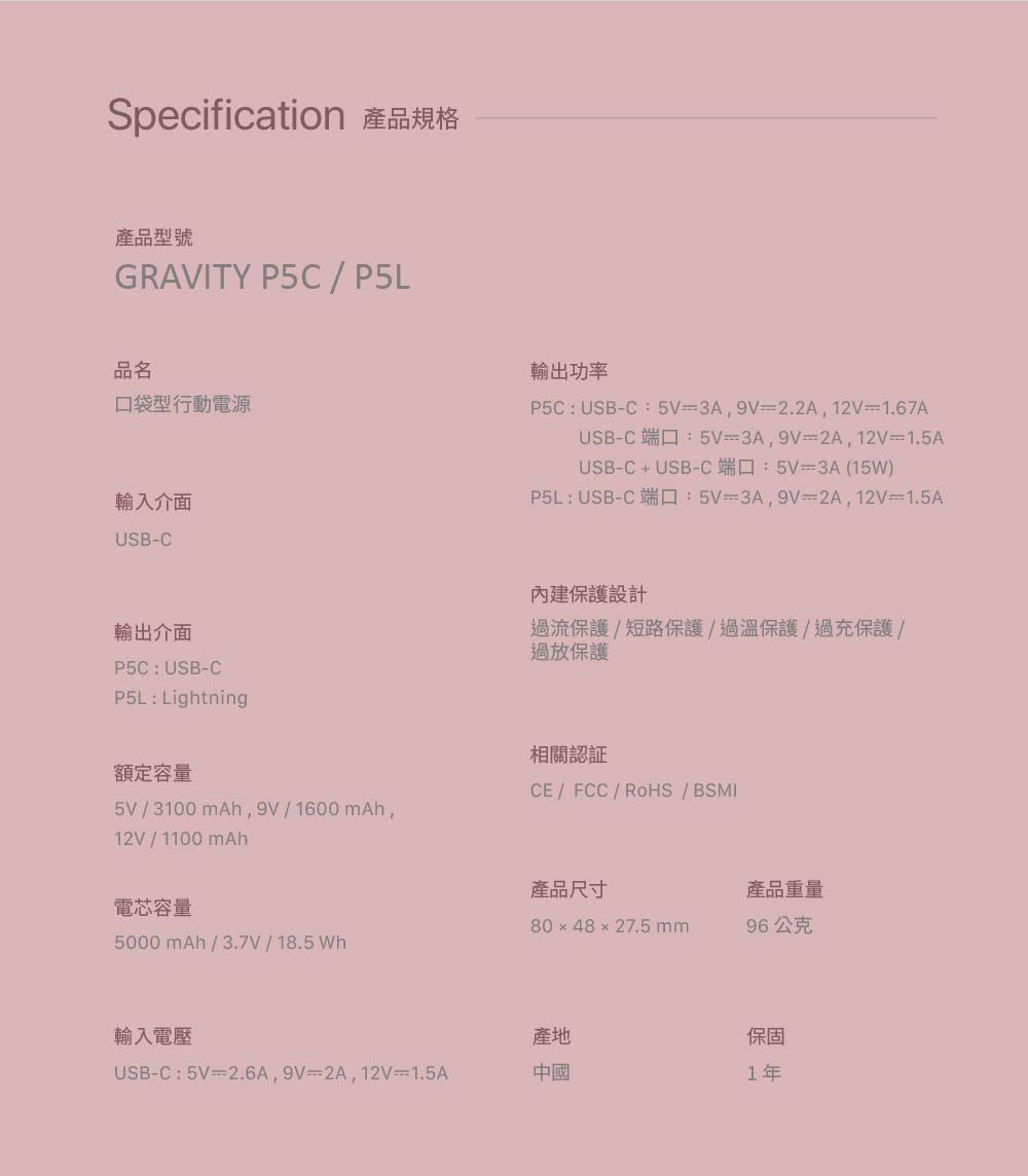 GRAVITY P5L Lightning口袋型行動電源(iPhone)