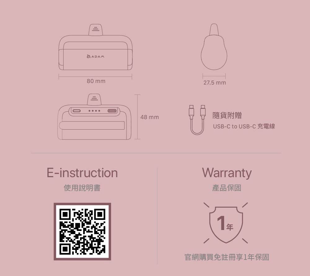 - 內容:行動電源 1 個、USB-A to C 線材 1 條
