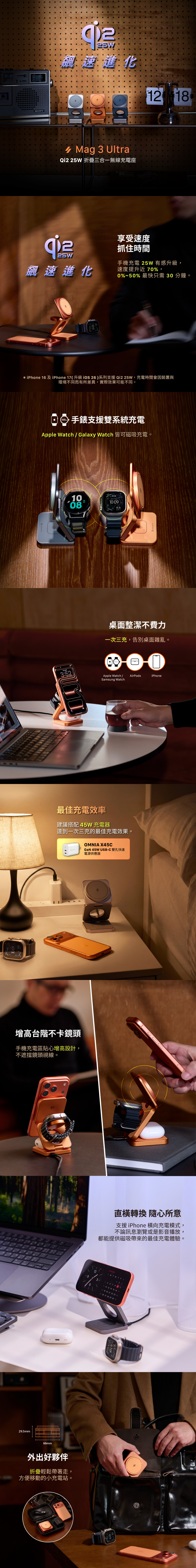 ◼︎ 取得WPC最新 Qi2 25W 無線充電認證,磁吸充電 iPhone 最高可達 25W。