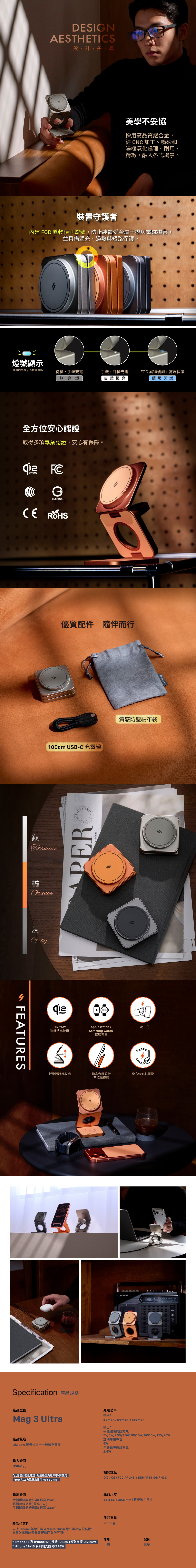 *iPhone 12(or later) 全系列MagSafe適用,Android裝置需搭配磁吸手機殼方可使用。