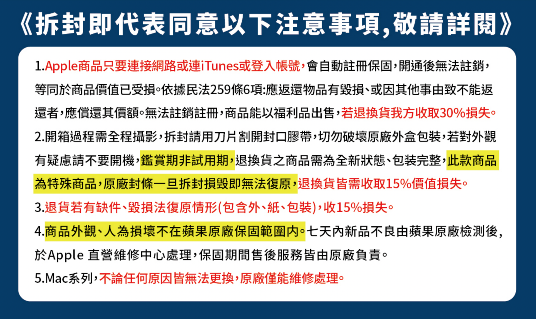 ⚠️ 此類商品為 Apple 官方製造,但不享有原廠保固,由本賣場提供 90 天店家保固服務。