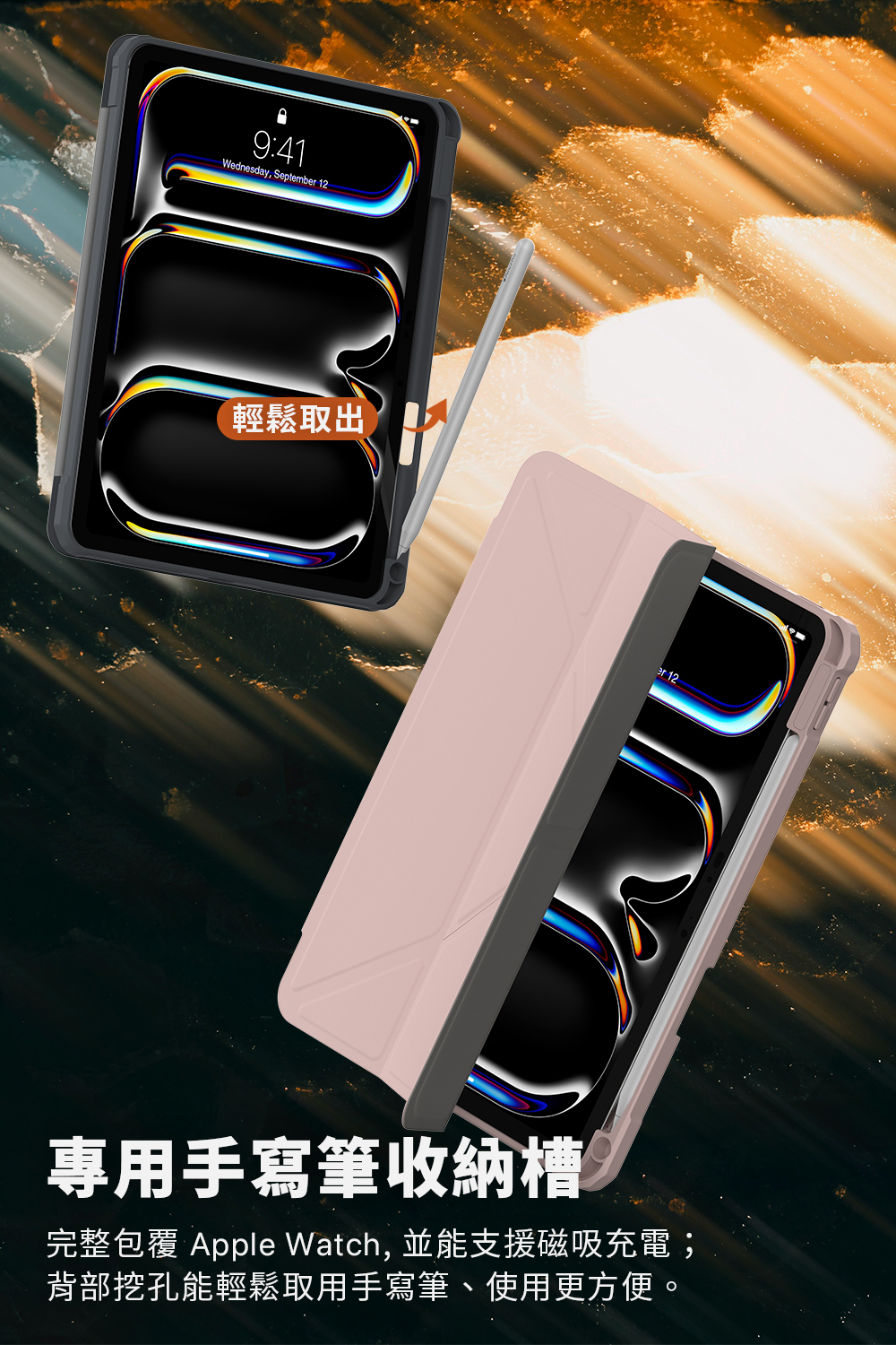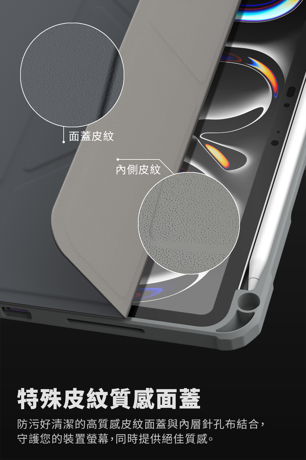 • 筆槽設計能完整包覆Apple pencil,支援磁吸充電