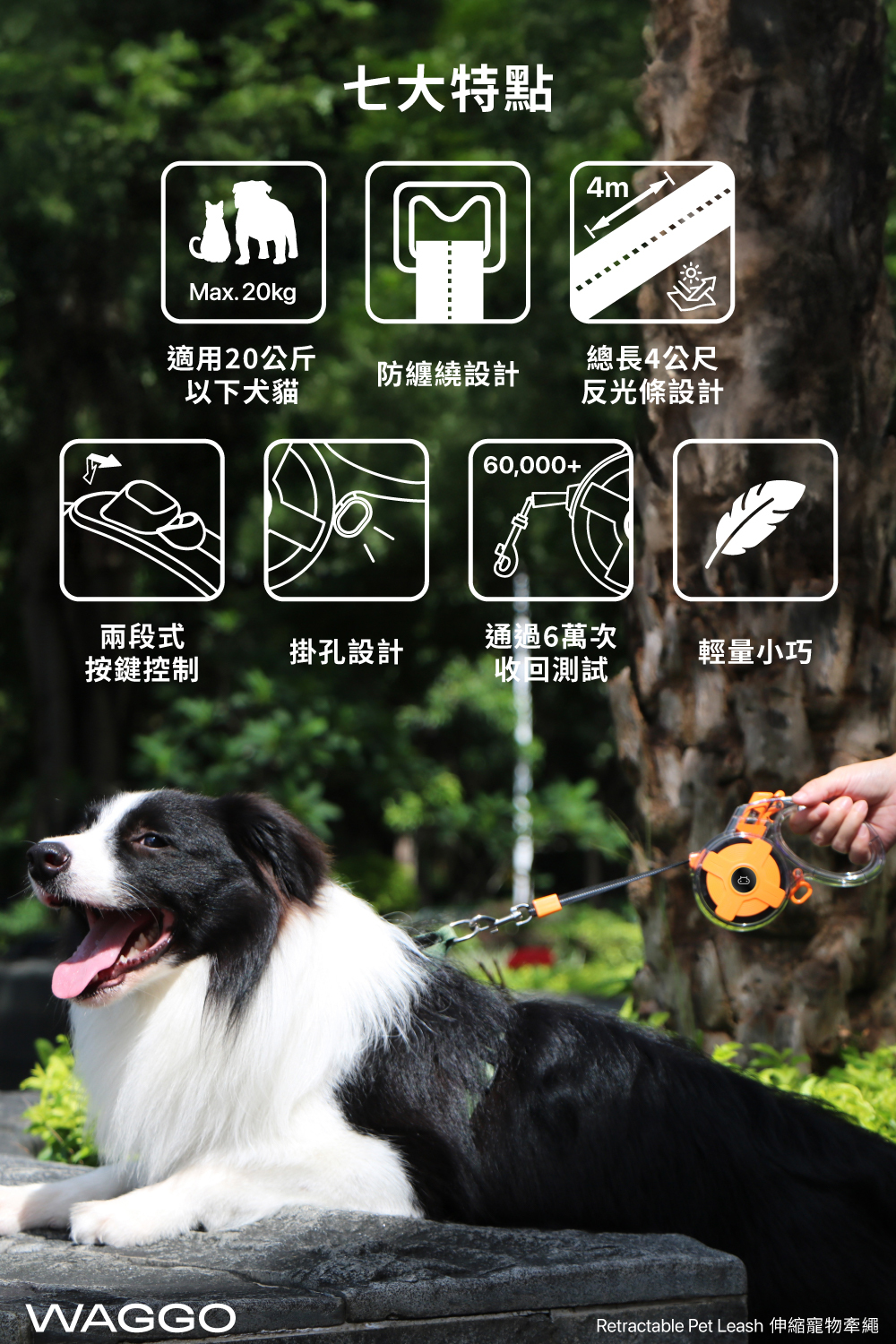 ・帶狀牽繩長4米,適用20公斤以下寵物