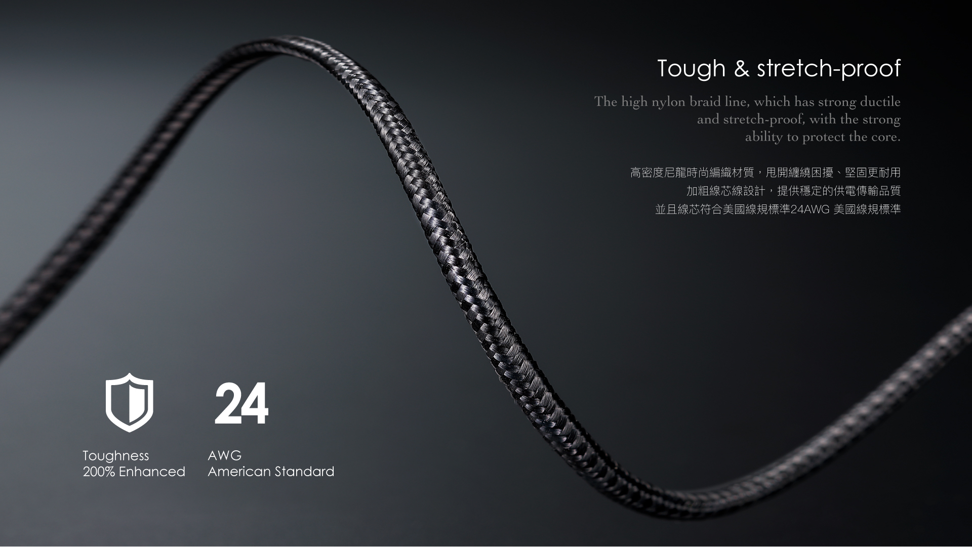 ■ 高密度尼龍編織材質,杜絕纏繞、堅固耐用