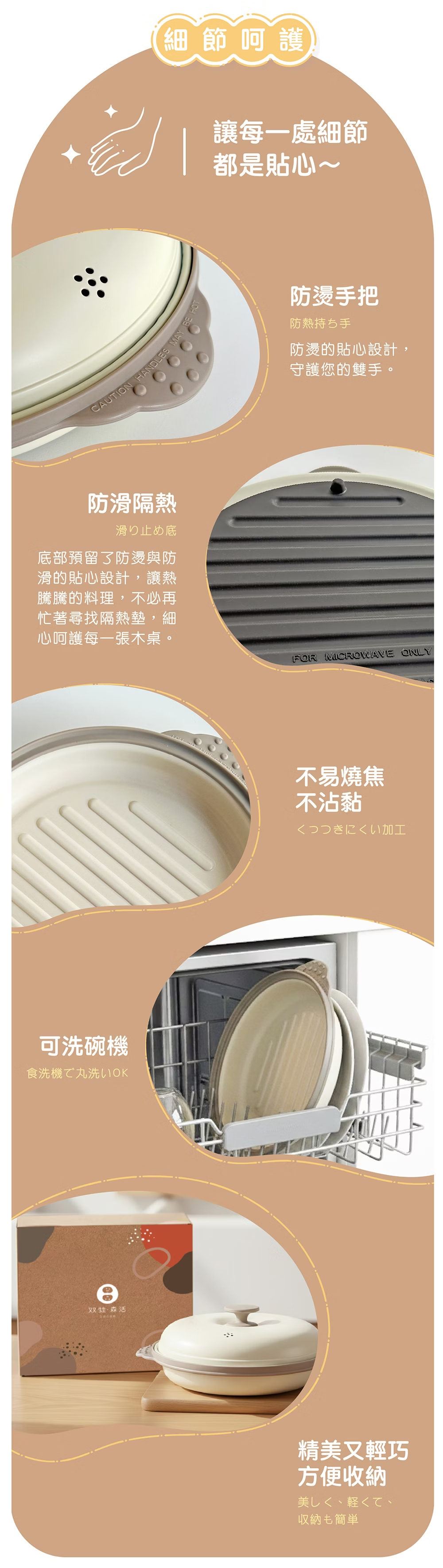 • 安全防護:防燙防滑設計,守護雙手與木桌。