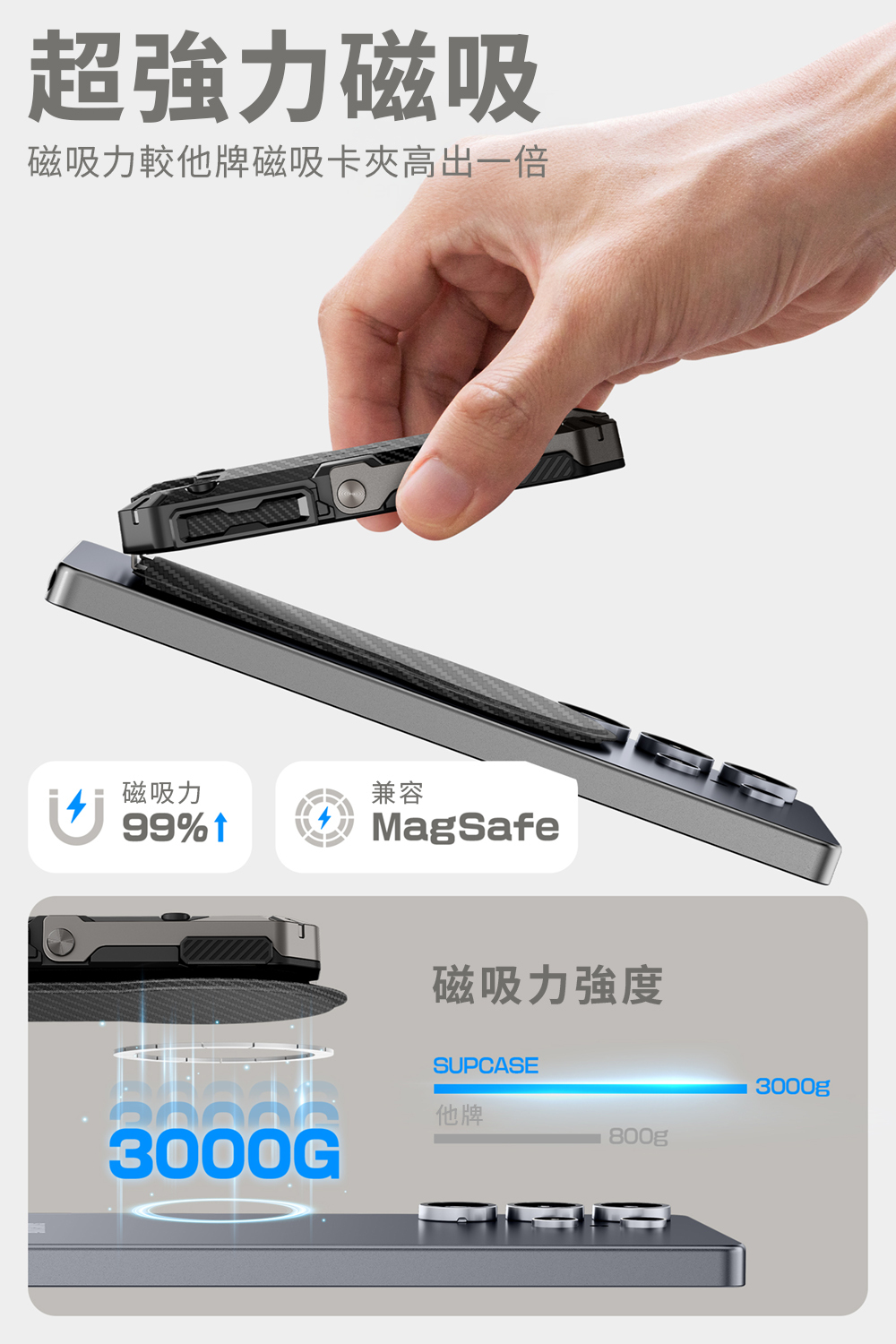 ●內置磁鐵,磁力高達 3000g,確保穩固貼合