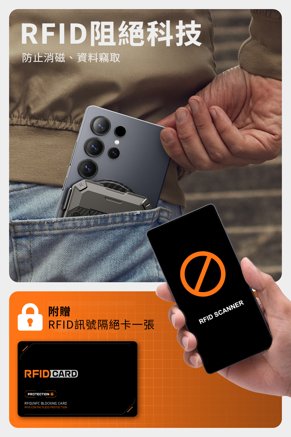 ●隨附 1 張 RFID 屏蔽卡,可防止身分盜竊和卡片消磁