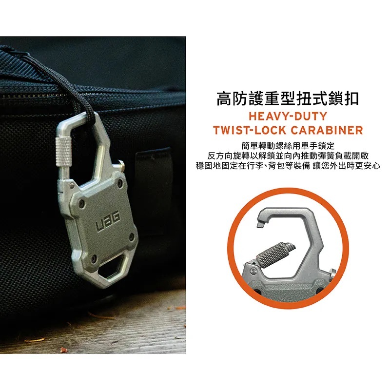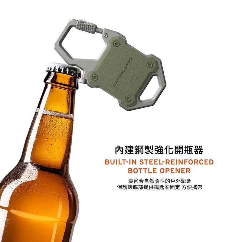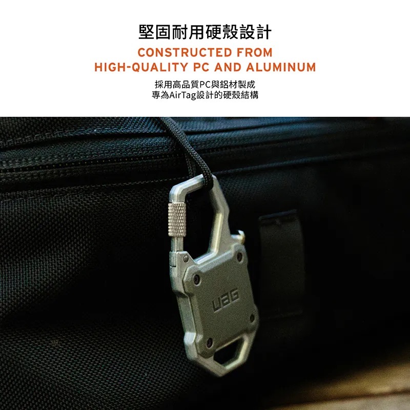 • 鎖定式登山扣: 耐用的 Twist-lock 登山扣,可將 AirTag 安全地固定在行李箱、背包或戶外裝備上,讓您安心出行。