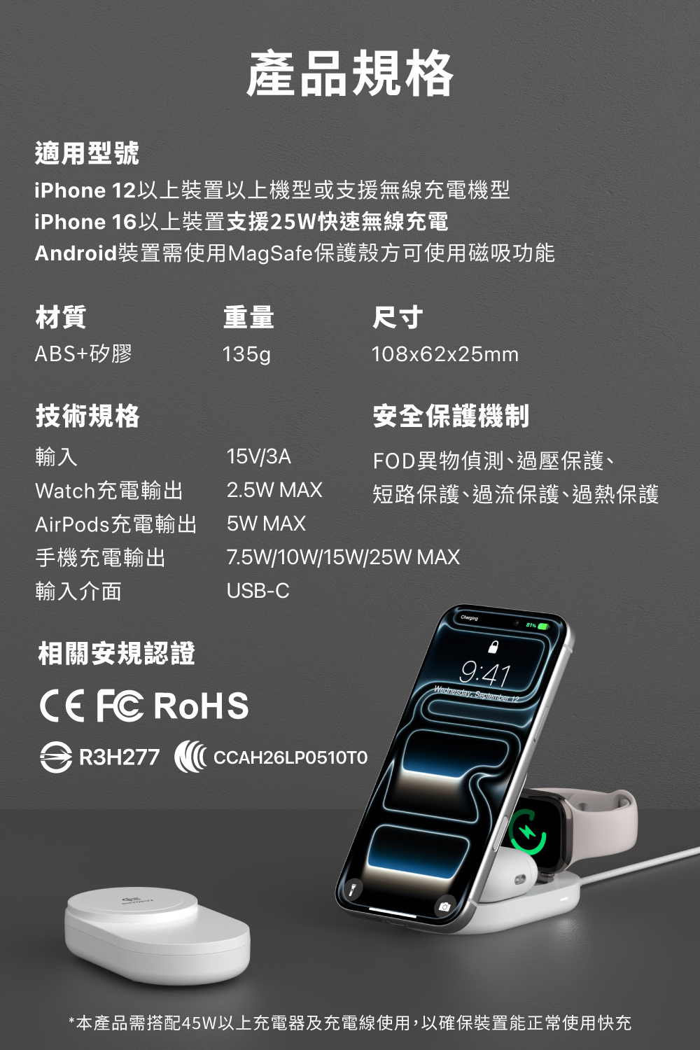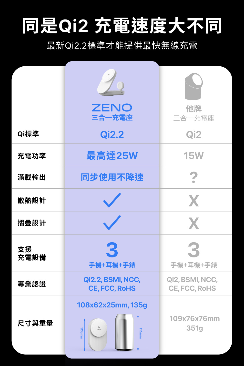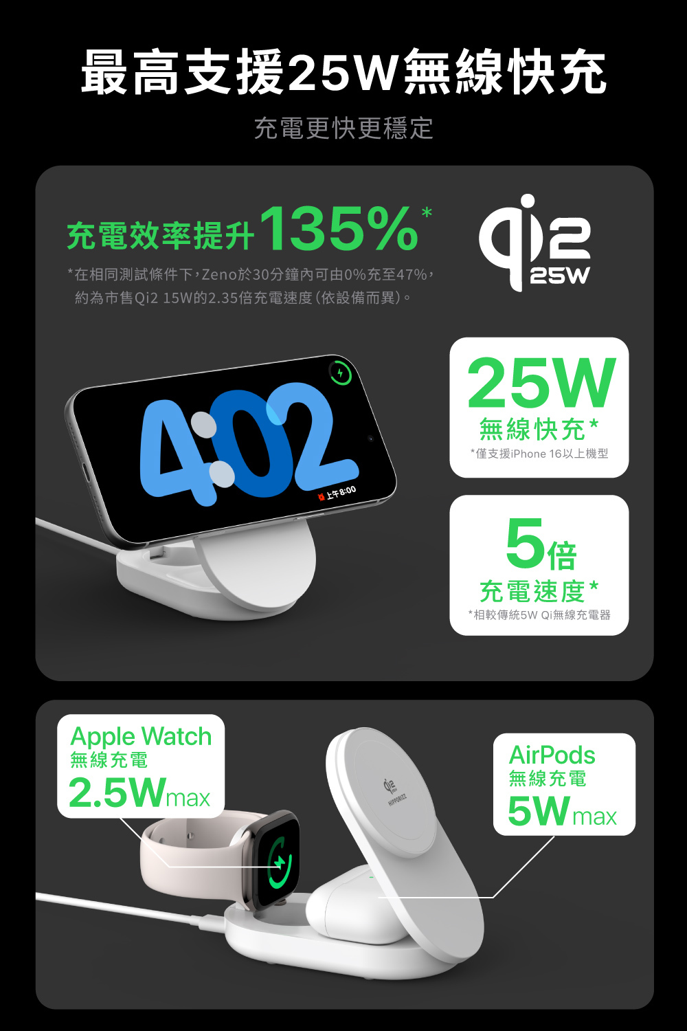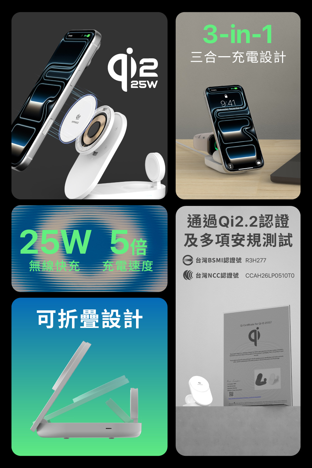 ● 採用Qi2.2-25W方案,充電更快更穩定